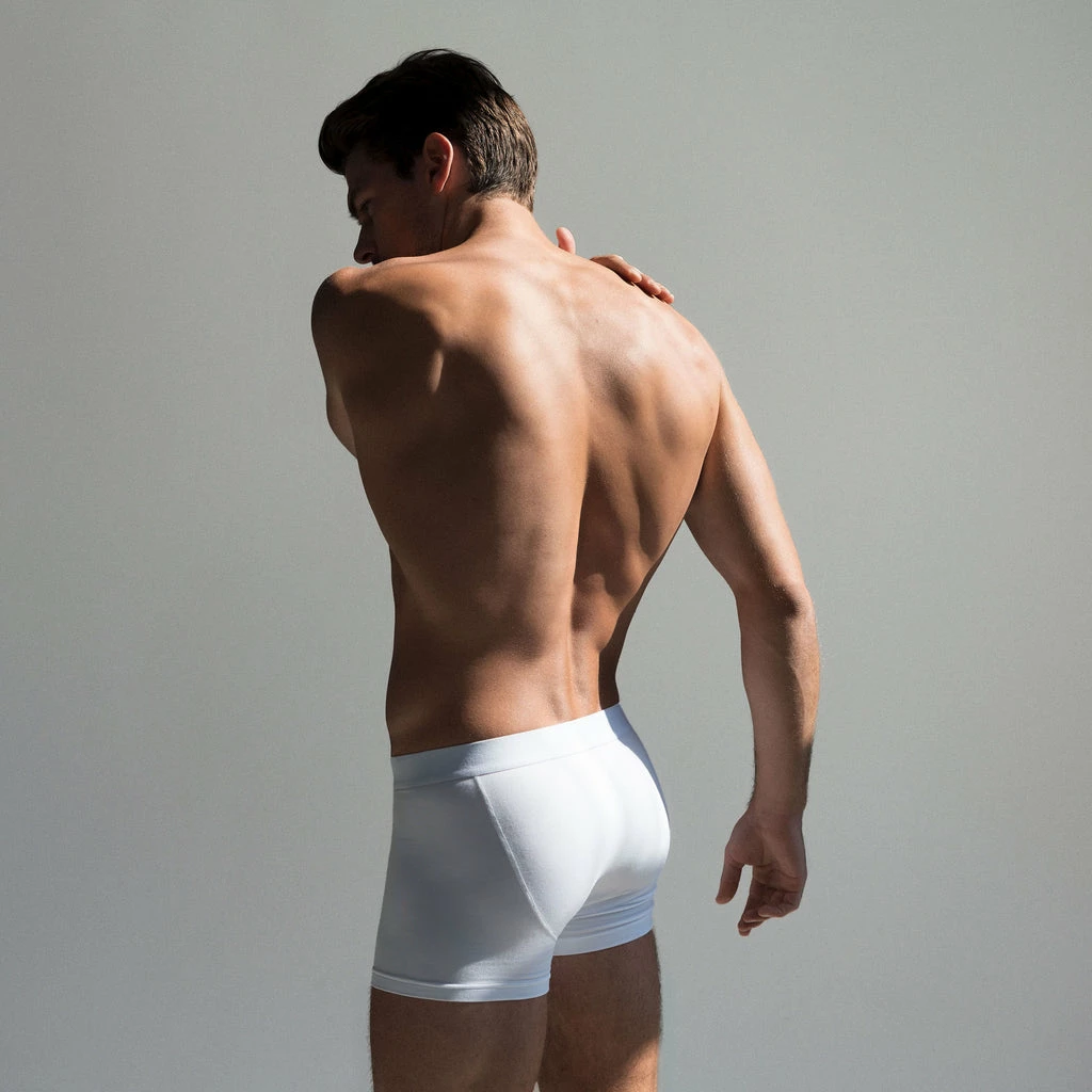 Bread & Boxers micro modal white boxer brief – package of two boxer briefs. 95% micro modal, 5% elastane. Covered wastband with subtle logo, double layer front panel. Classic fit, slightly higher rise for comfort. Stretchy soft fabric that keeps its shape after many washings. Tagless. Designed and developed in Sweden. Made in India. Available in sizes S – XL.
