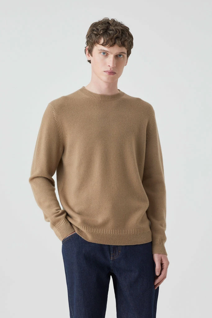Closed alder wood brown organic cashmere fine knit crewneck sweater. Made of 100% organic cashmere with a medium weight knit of 7gg.. Neckline ribbed detail, ribbed sleeve cuffs and ribbed unique hem band.