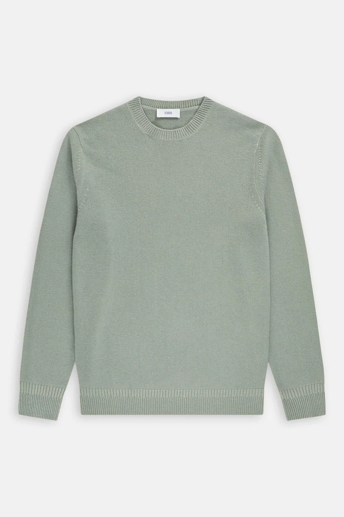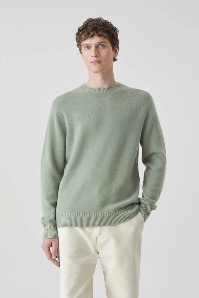 Closed light green organic cashmere fine knit crewneck sweater. Made of 100% organic cashmere with a medium weight knit of 7gg.. Neckline ribbed detail, ribbed sleeve cuffs and ribbed unique hem band.