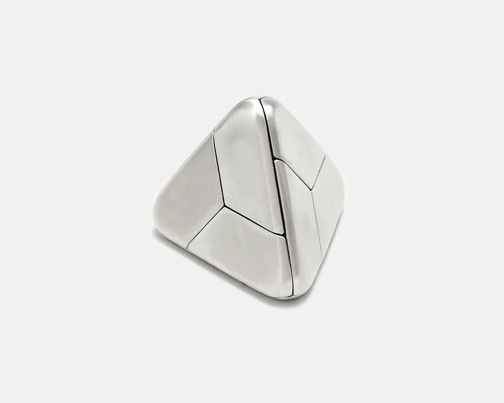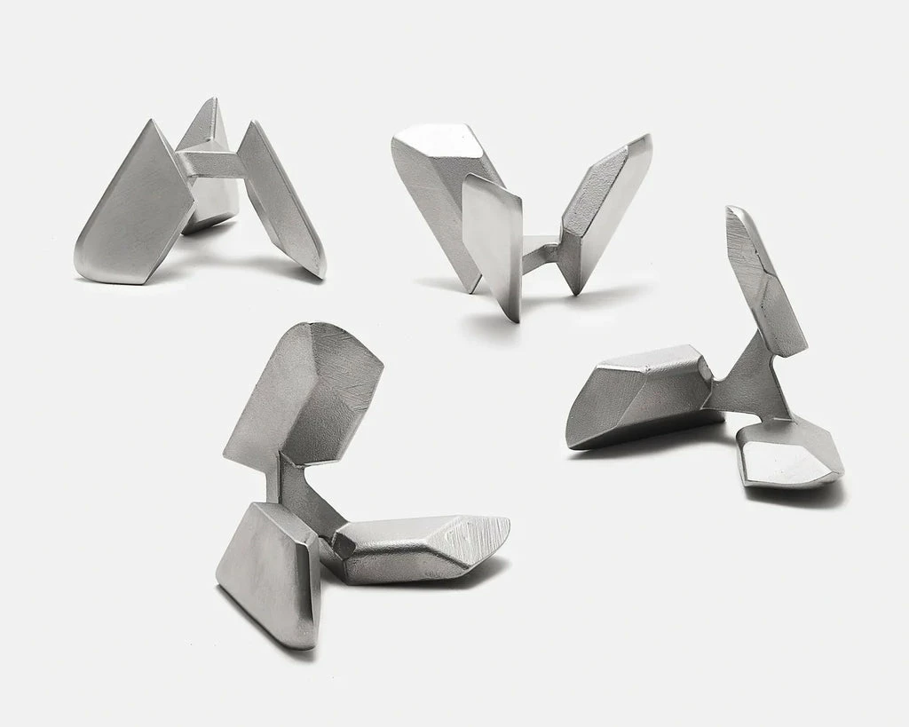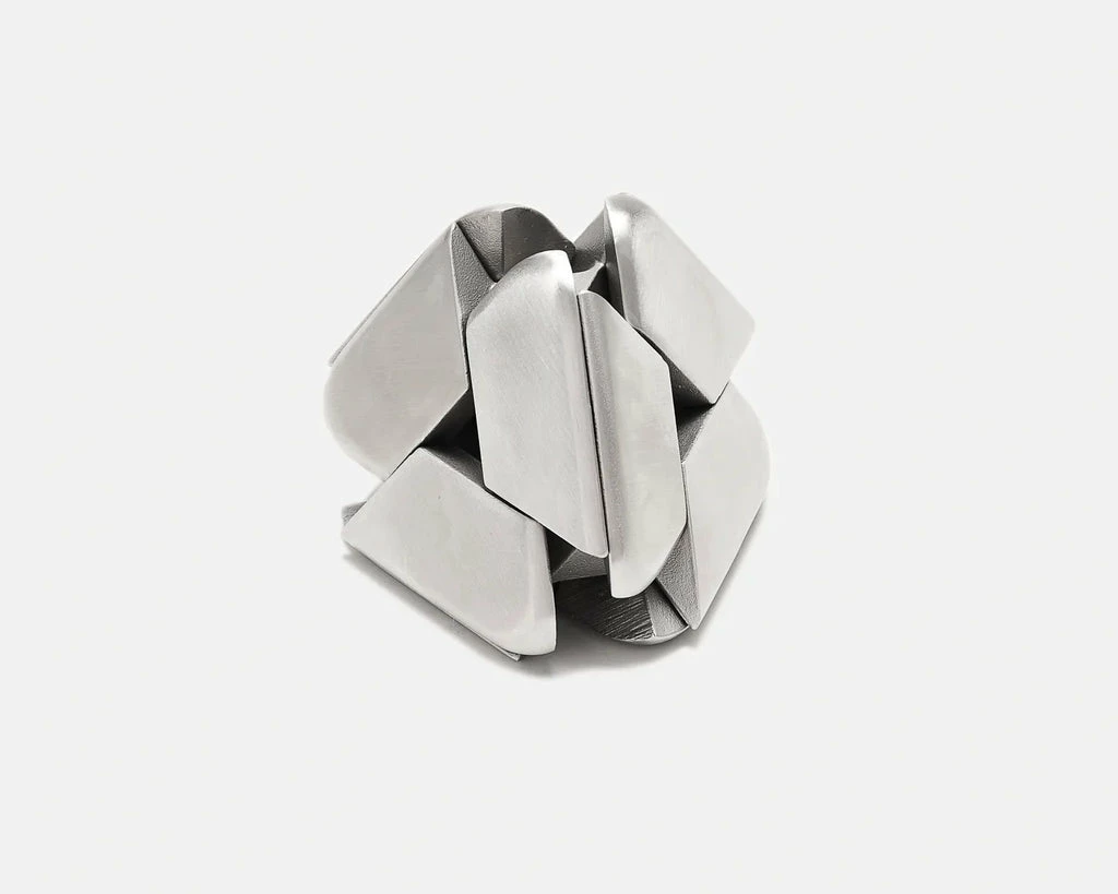 Craighill’s Tetra Puzzle is a mechanical puzzle composed of four identical pieces of oxidized stainless steel. Brushed stainless steel and scratch resistant.Â