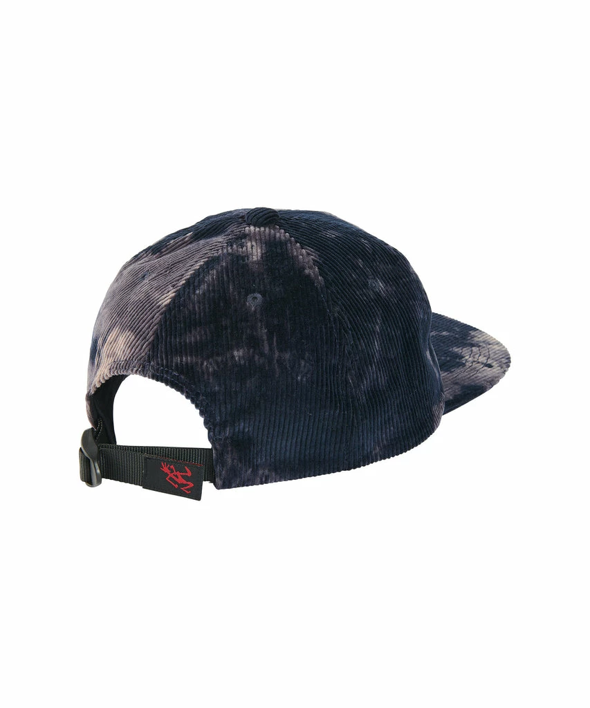 Gramicci bleach dye black corduroy hat with Gramicci logo embroidered on front.