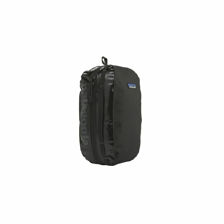 Patagonia Black Medium Black Hole Cube is a Dopp kit or medium organizer. Â Made of lightweight 100% recycled polyester fabric and 100% recycled polyester lining. Â It is weather resistant with a TPU-film laminate and a water repellant finish. Â The main compartment is divided in half with zippered mesh pockets.