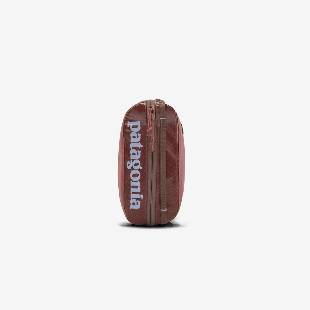 Patagonia Rosehip red Small Black Hole Cube is a Dopp kit or small organizer. Â Made of lightweight 100% recycled polyester fabric and 100% recycled polyester lining. Â It is weather resistant and has a single compartment with interior organization.