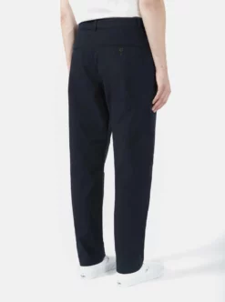 A hollywood waistband w/ ergonomic quarter-top hand pockets. Rear welt pocket bags stitched-thru to shell for flatter interior finish.