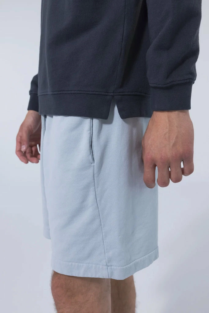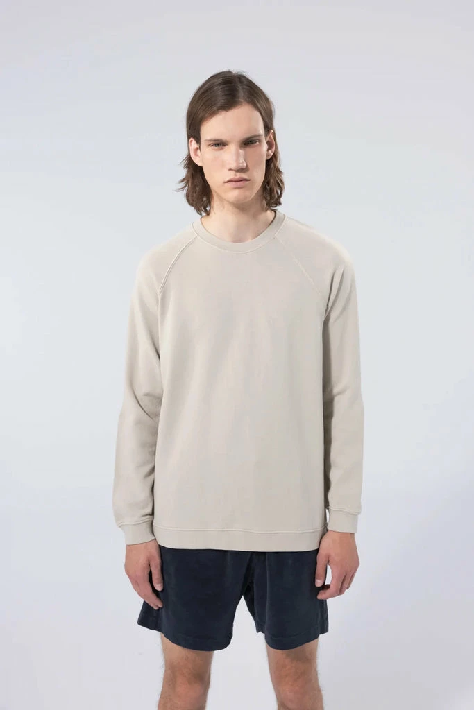 Unfeigned Tidal Foam color fitted crewneck sweatshirt. 100% Organic cotton french terry fabric, raglan sleeve , ribbed cuffs and seam centered detail on arms. Straight hem with slash sides for movement. Made in PortugalÂ